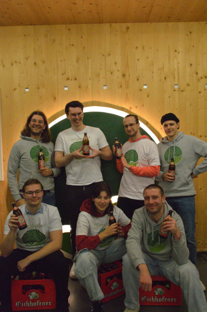 Wir schenken am Campusfest mehr Bier aus als ein großes Oktoberfestzelt an einem Tag. So müssen 30.000 Flaschen geplant, bestellt, geliefert und entsprechend unter die Leute gebracht werden. Zu unseren Aufgaben gehören daher die Verhandlungen mit der Brauerei als auch mit den Fachschaften welche die Bierstände betreiben. Am Ende wird dann die große Abrechnung gemacht.